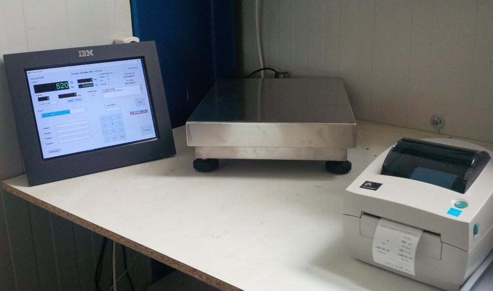 Συνδέεται με βιομηχανική οθόνη αφής 10.1" και θερμικό εκτυπωτή για την εκτύπωση των αυτοκόλλητων ετικετών.